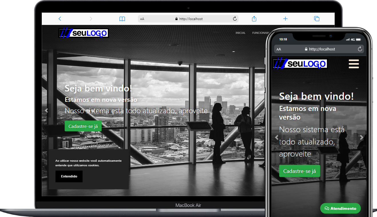 O sistema é totalmente responsivo e pode ser acessado pelos aplicativos ou via navegador em qualquer dispositivo: