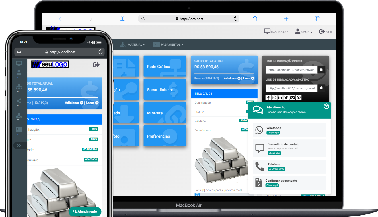 Sistema completo de marketing multinível MMN que permite configurar todas as variáveis de níveis, lateralidade, valores e pagamentos com comissões automáticas. No mesmo dia, sem conhecimento técnico, você estará com seu negócio MMN funcionando! Veja detalhes...