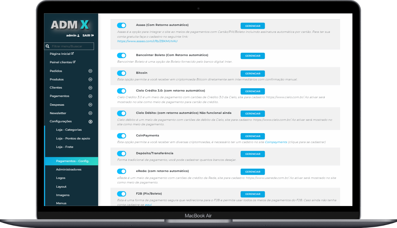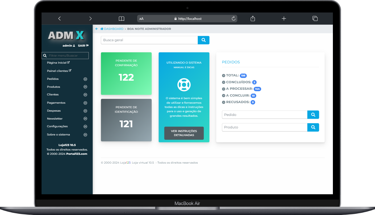 Gerencie todo o sistema, configurações, usuários e relatórios completos