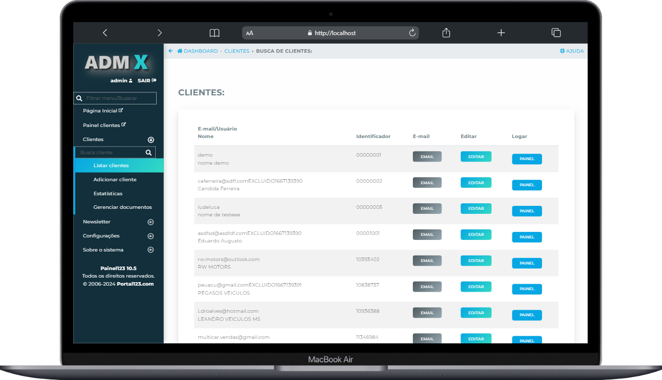 Gerencie todo o sistema, configurações, usuários e relatórios completos