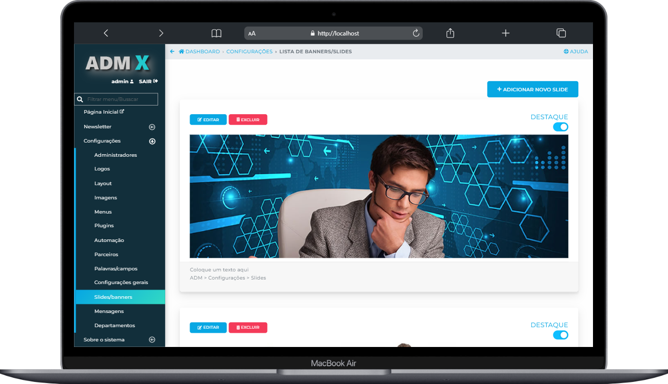 Gerencie todo o sistema, configurações, usuários e relatórios completos