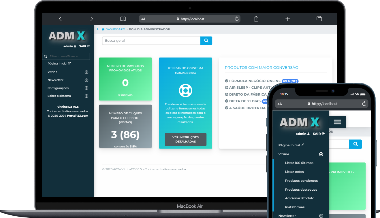 Gerencie todo o sistema, configurações, usuários e relatórios completos